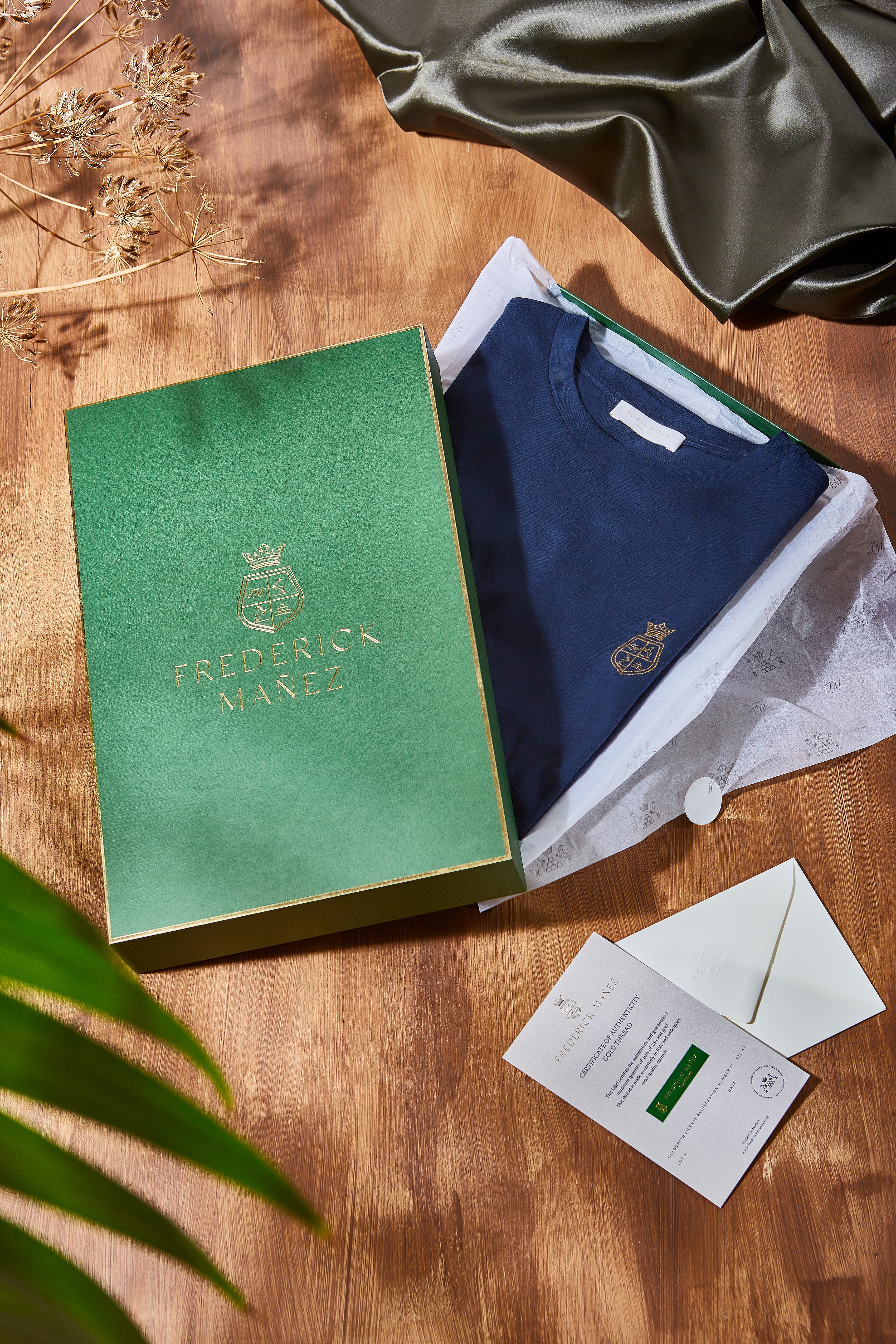 Explore Frederick Mañez's exquisite craftsmanship. Our journey to redefine luxury brings you an exclusive find – a blend of40% pure 24-carat gold and 60% polyamide, meticulously crafted in Italy. Our garments, embroidered with this unique 24ctgold thread, transform fashion into wearable art, ensuring each piece is a statement of exclusivity and timeless elegance.